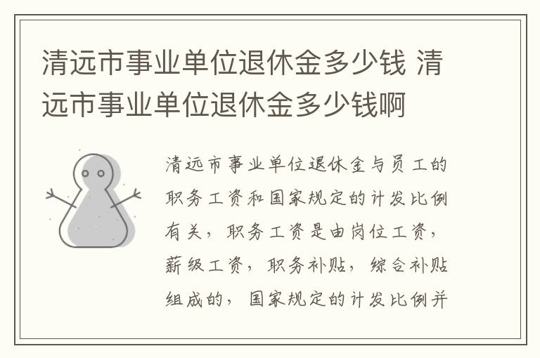 清远市事业单位退休金是由职务补贴,薪级工资,综合补贴组成的,领取退休金时必须满足三个条件,首先达到法定的退休年龄,其次按照规定交纳养老保险,最后缴纳养老保险需要满15年。由于每个员工的工龄不同,工资不同,退休时的年纪不同,各地的平均工资也不同,因此退休后的退休金不同。
