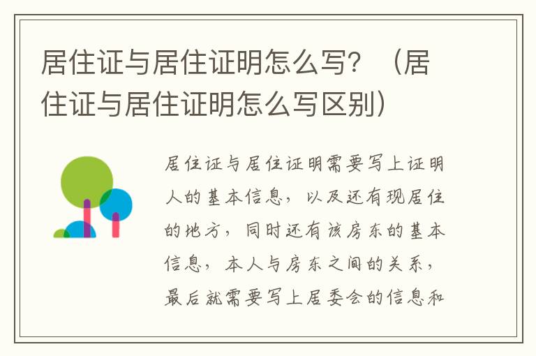 综合上面所说的,居住证的办理前提是要有居住证明才可以实施,一般在写居住证明时就一定要到当地的居委会或者是村委所进行开具,只有确定当事人是现居住在这里的人,同时也要有合法的证明材料,这样才能确定此居住证明是有效的。