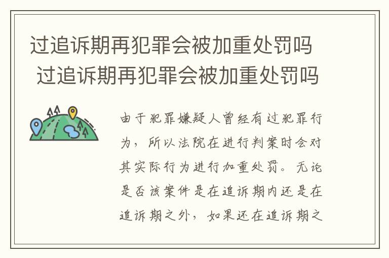 会被加重处罚,在刑法中,犯罪有相关的追诉期,但是也有例外,比如法定最高刑为无期徒刑、死刑的,如果二十年以后认为必须追诉的,须报请最高人民检察院核准后可以追诉。