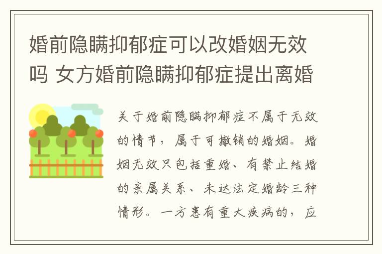 一、婚前隐瞒抑郁症可以改婚姻无效吗?