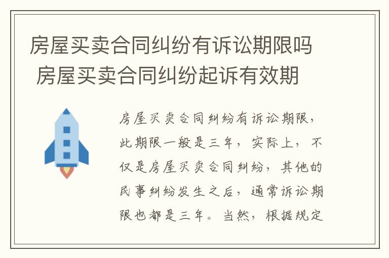 一、房屋买卖合同纠纷有诉讼期限吗?