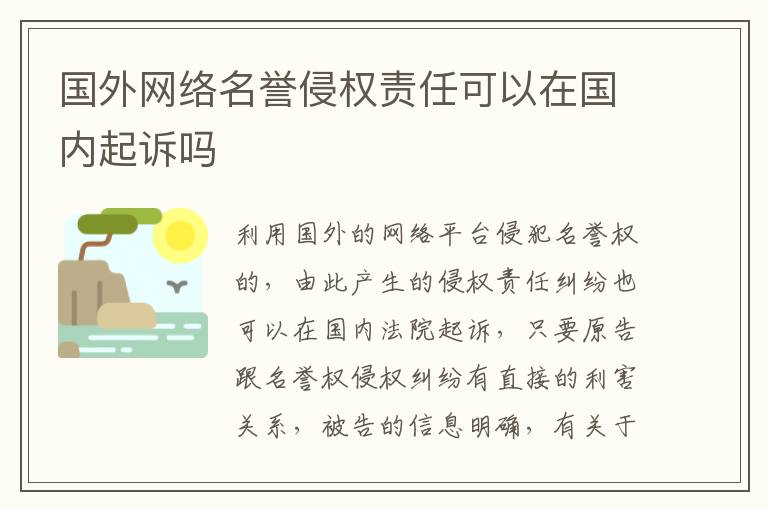 一、国外网络名誉侵权责任可以在国内起诉吗?