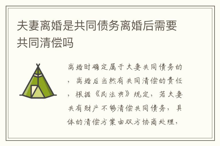 一、夫妻离婚是共同债务离婚后需要共同清偿吗?