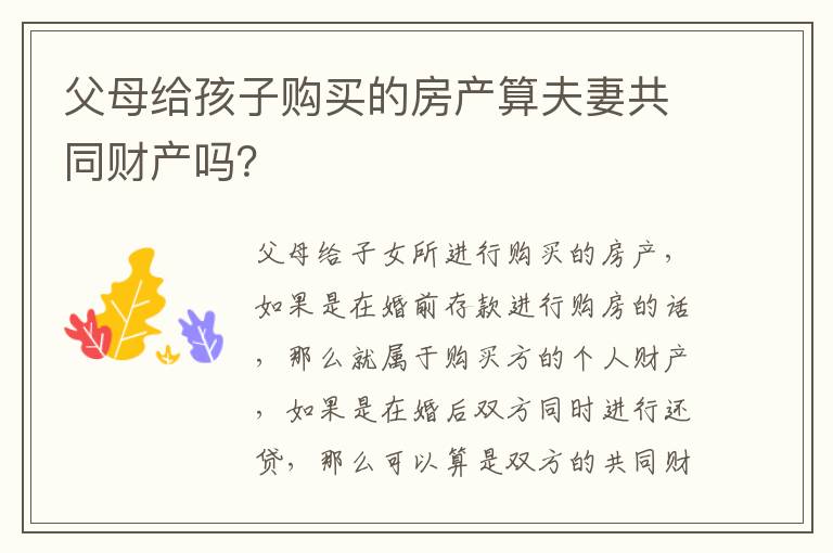 一、父母给孩子购买的房产算夫妻共同财产吗?