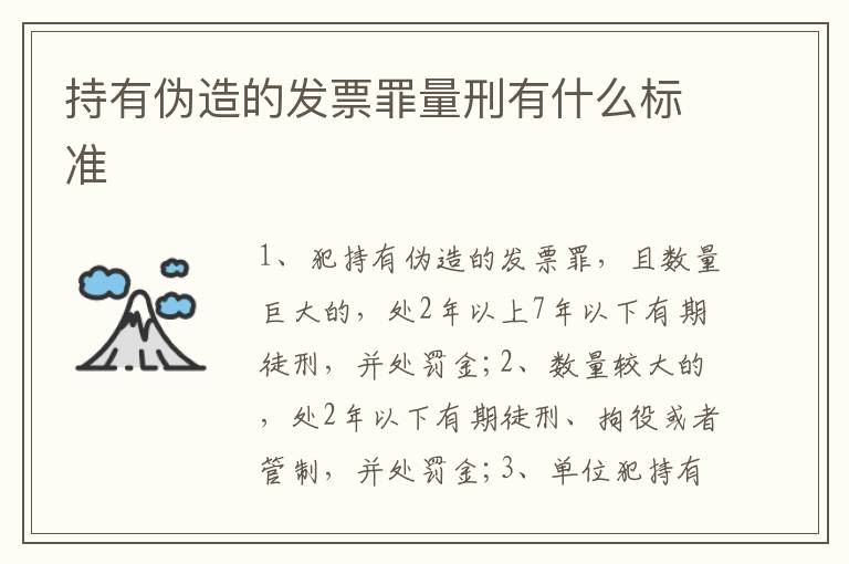 明知是伪造的发票而持有,数量较大的,处二年以下有期徒刑、拘役或者管制,并处罚金;数量巨大的,处二年以上七年以下有期徒刑,并处罚金。