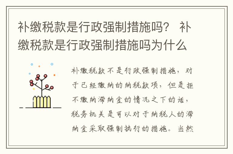 补缴税款不是行政强制措施,对已缴纳税款,但拒不缴纳滞纳金的,税务机关可以单独对纳税人应缴未缴的滞纳金采取强制执行措施。