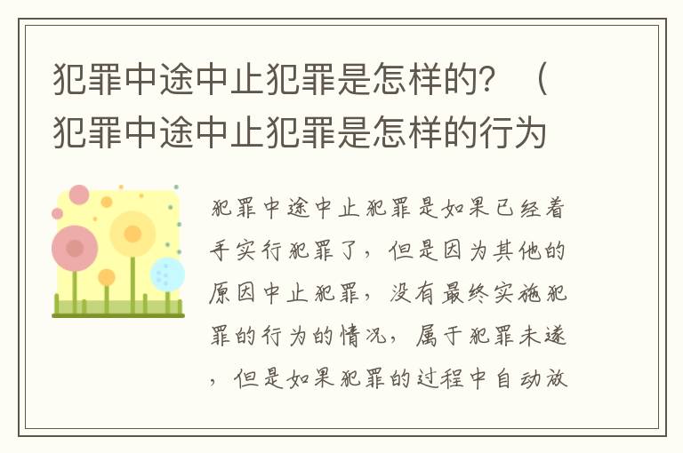 一、犯罪中途中止犯罪是怎样的?