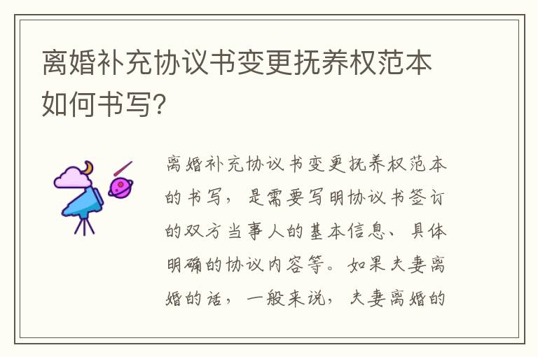 一、离婚补充协议书变更抚养权范本如何书写?