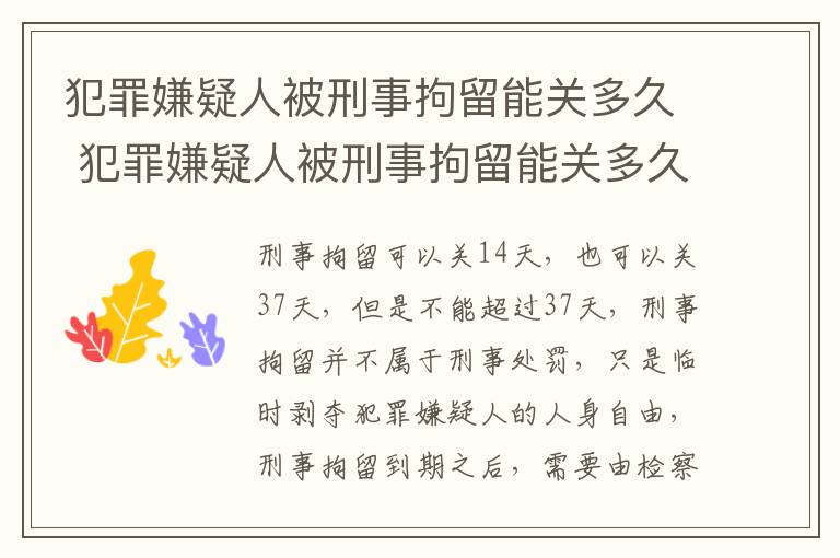 一、犯罪嫌疑人被刑事拘留能关多久?