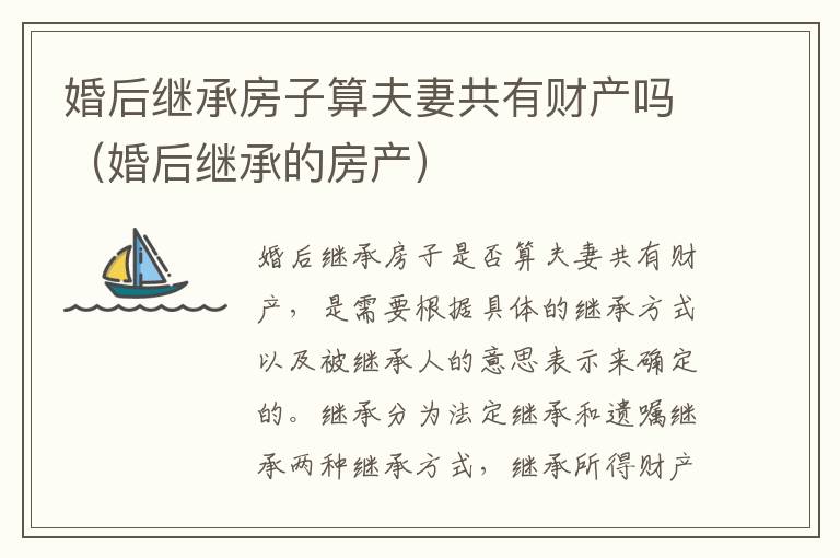 婚后继承的财产不一定全都是是夫妻共同财产。,但继承的是父母的遗产的话,一般属于夫妻共同财产。遗嘱确定财产只属于夫或者妻的,属于夫妻一方的个人财产,不属于夫妻的共同财产。