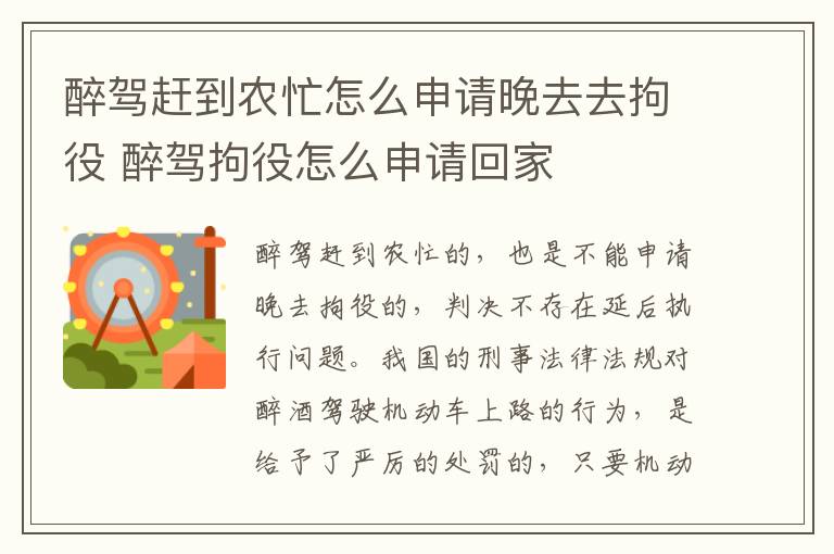 醉酒拘役是一种刑事犯罪的。判决不存在延后执行问题,尤其是刑事判决,判决生效后立即执行。