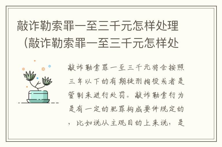 敲诈勒索罪一至三千元将会按照三年以下的有期徒刑拘役或者是管制来进行处罚。《刑法》第二百七十四条 敲诈勒索罪