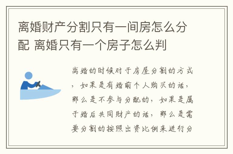 离婚财产分割只有一间房怎么分配 离婚只有一个房子怎么判