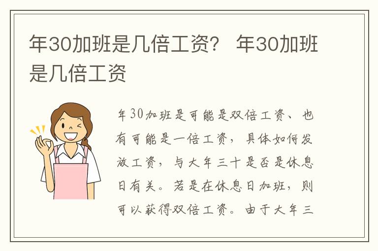 一、年30加班是几倍工资?