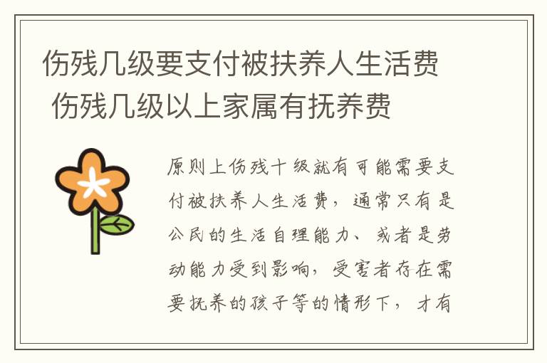 1、原则上伤残十级就有可能需要支付被扶养人生活费,这是由于受害者的劳动能力受到影响、且存在被抚养人的,那么实施加害行为的一方,就有可能需要支付被抚养人生活费。