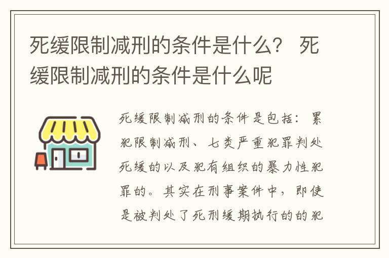 死缓,是指对应当判处死刑,但又不是必须立即执行的犯罪分子,在判处死刑的同时宣告缓刑2年执行,实行劳动改造,以观后效。按照《刑法》关于“限制减刑”的规定,包含了三种实体情形:
