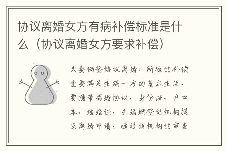 一、协议离婚女方有病补偿标准是什么?