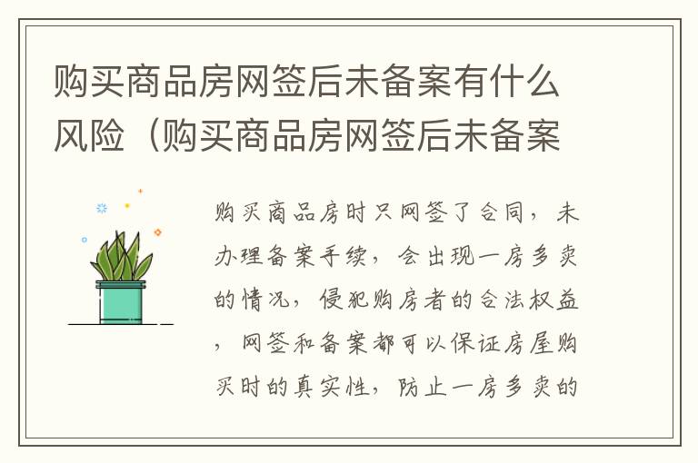 会有一房多买的风险存在,合同已网签未备案的意思是合同已经经过网络上面的签约,但是没有在房管部门进行备案。房屋交易过程中签订房地产中介服务合同、房源信息公示、签订买卖合同等全部都将在网上进行。并且房屋交易过程中各个环节信息反馈、存量房房源信息、成交信息的查询和统计也都可以通过该系统和网站获得。这个线上过程就是网签和备案中的网签。