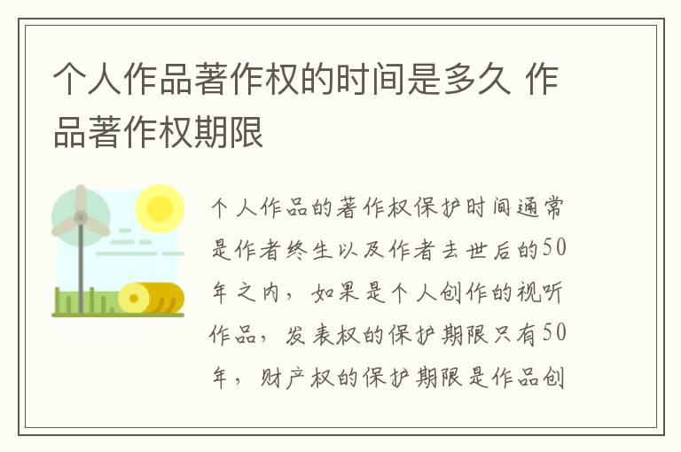 事实上,法律制度中对个人作品著作权规定的保护期限是很久的,如果作品是跟他人合作的,在最后死亡的作者死亡后的50年之内,作品仍然享有著作权,作品的著作权到期后,是不能申请延长保护期限的,但是在法定保护期限内,任何单位和个人是不能随意使用的。