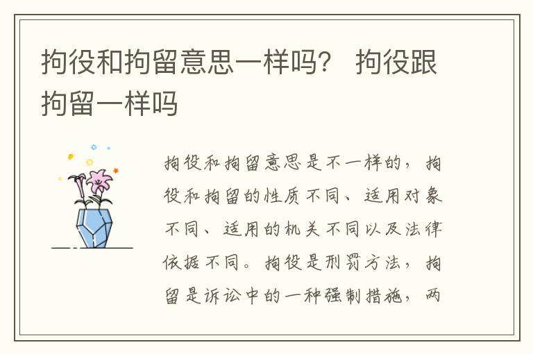 不一样,拘留包括好几种,有司法拘留、刑事拘留、行政拘留。