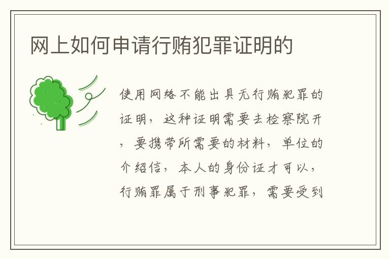 在网上不能开无犯罪的证明,行贿罪的犯罪主体只能是个人,不能是单位,要具备刑事责任能力,达到刑事责任年龄,行贿罪侵犯的是国家机构的正常管理秩序,公职人员不可收买的职务行为,构成犯罪必须是故意犯罪行为。