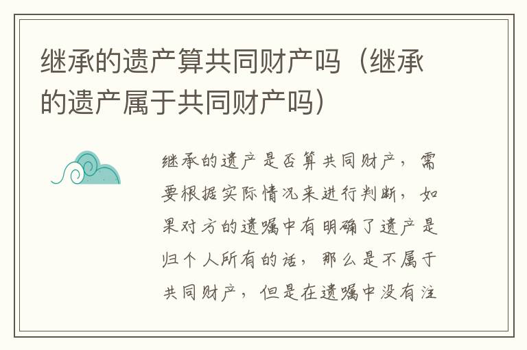 1、婚后继承的一方父母的财产只有在遗嘱中明确写了归一方才不属于共同财产,遗嘱中未注明的遗产属于共同财产。