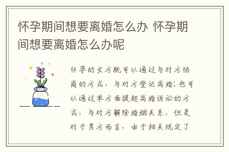 相关规定并没有禁止或者限制,怀孕的女方单方面地提出离婚的请求。因此,怀孕的女方既可以通过与对方协商的方式,与对方登记离婚;也可以通过单方面提起离婚诉讼的方式,与对方解除婚姻关系。但是对于男方而言,由于相关规定了:在女方怀孕期间,除非有特殊的情况,男方一般情况下并不能够单方面地提出离婚。因此,一般情况下,男方只能通过登记离婚的方式,来与女方解除婚姻关系。