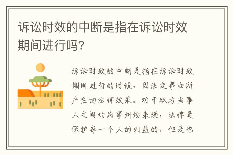 一、诉讼时效的中断是指在诉讼时效期间进行吗?