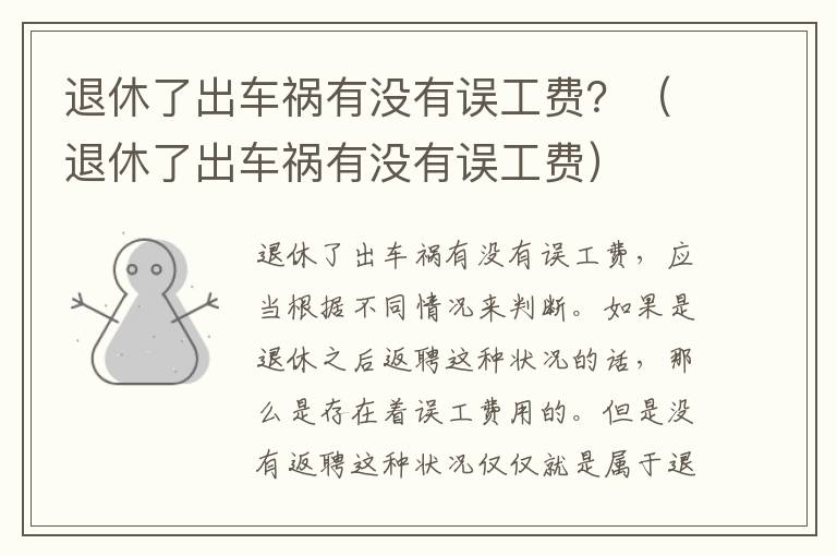 一、退休了出车祸有没有误工费?