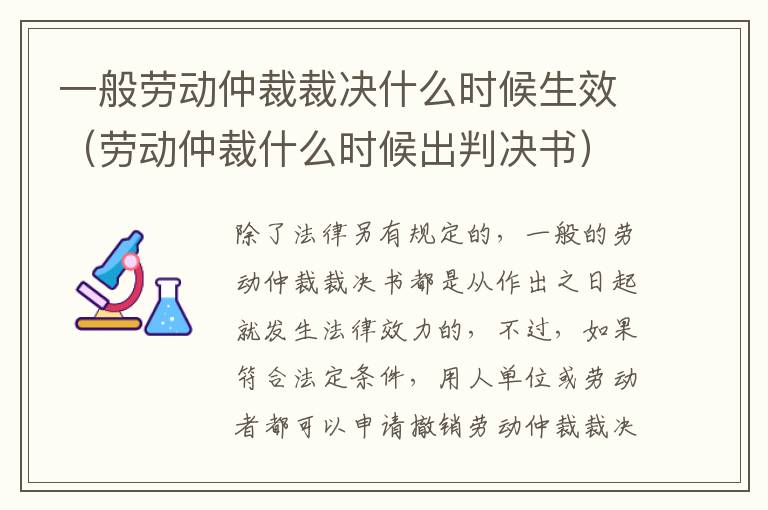 一、一般劳动仲裁裁决什么时候生效?