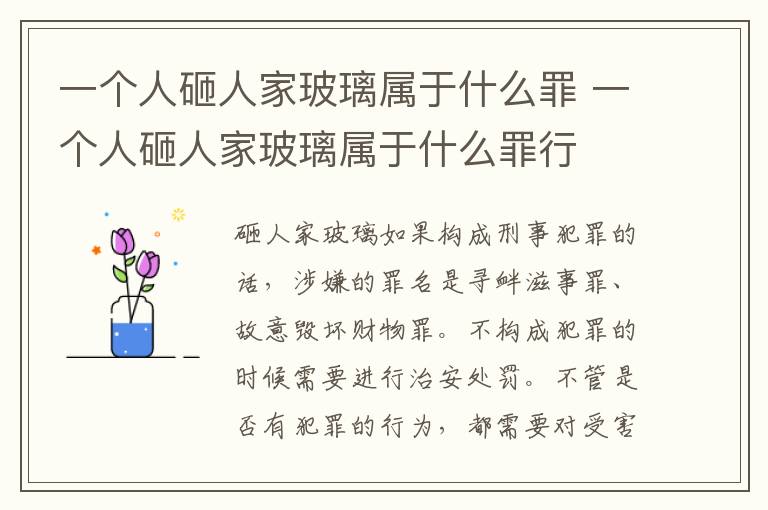 砸玻璃是故意损毁他人财物的治安违法行为,有可能构成寻衅滋事罪、故意毁坏财物罪。