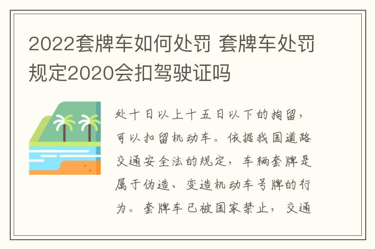 依据我国道路交通安全法的规定,车辆套牌是属于伪造、变造机动车号牌的行为。套牌车已被国家禁止,交通法中有明确规定,不允许套牌车辆的流动。套牌车是指参照真牌车的型号和颜色,将号码相同的假牌套在同样型号和颜色的车上,其中有很多是报废后偷运出来的旧车翻新的。确定为被套牌的车辆,可撤销使用套牌期间发生的交通违法信息,并可申请换车牌号和行驶证。