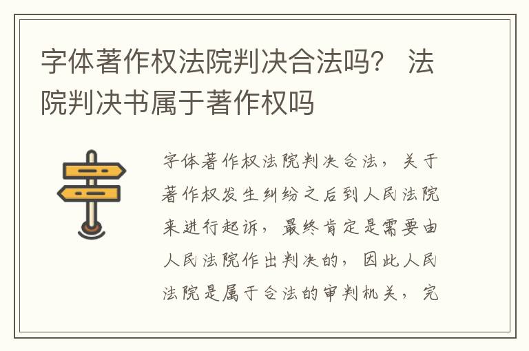 1、字体著作权法院判决合法,著作权有诉讼时效规定,因著作权产生纠纷的,请求主张的诉讼时效是二年并不是三年,诉讼时效自著作权人知道或者应当知道侵权行为之日起计算。