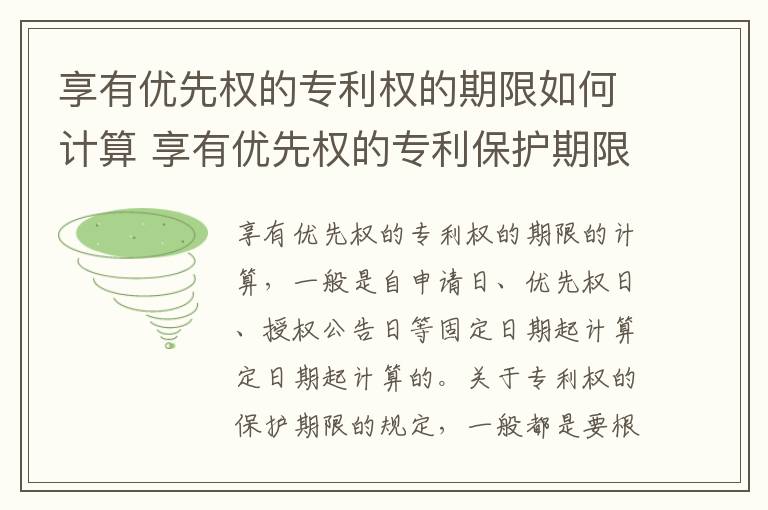 例如,专利权的期限均自申请日起计算。要求外国优先权的发明或者实用新型专利申请应当在十二个月内提出,该期限的起算日为在外国第一次提出专利申请之日(优先权日)起计算。
