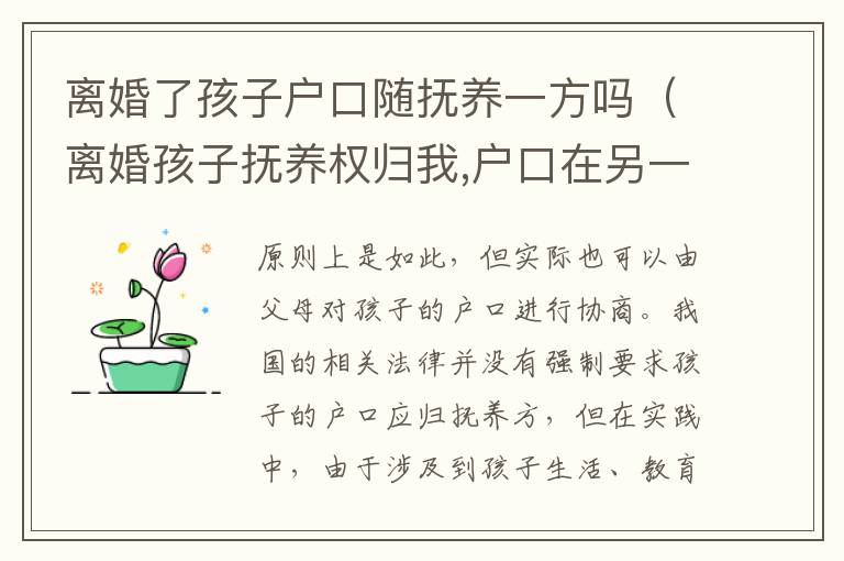 原则上是的。我国的相关法律并没有强制要求孩子的户口应归抚养方,但在实践中,由于涉及到孩子生活、教育等问题,户口在抚养方相应会更方便一些,但具体户口应归哪方可由父母自行商议,法律上没有强制规定。