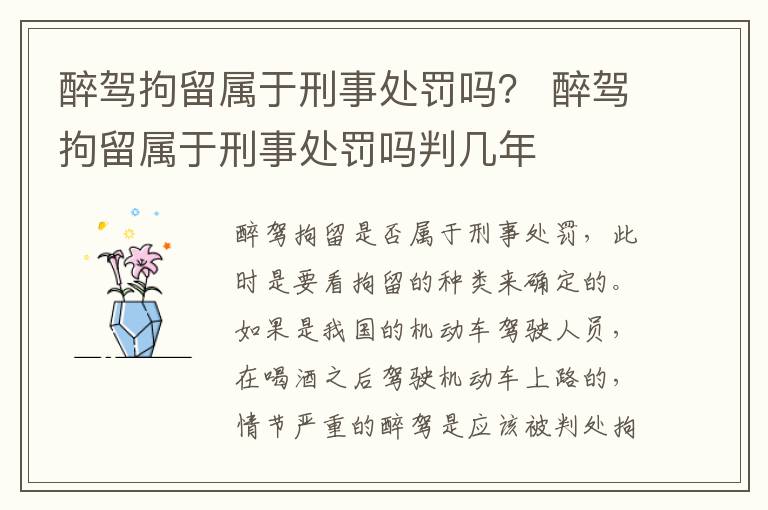 由此可见,如果对醉驾之人的处罚是拘留的话,一般就属于交通行政处罚,而并非是刑事处罚了。