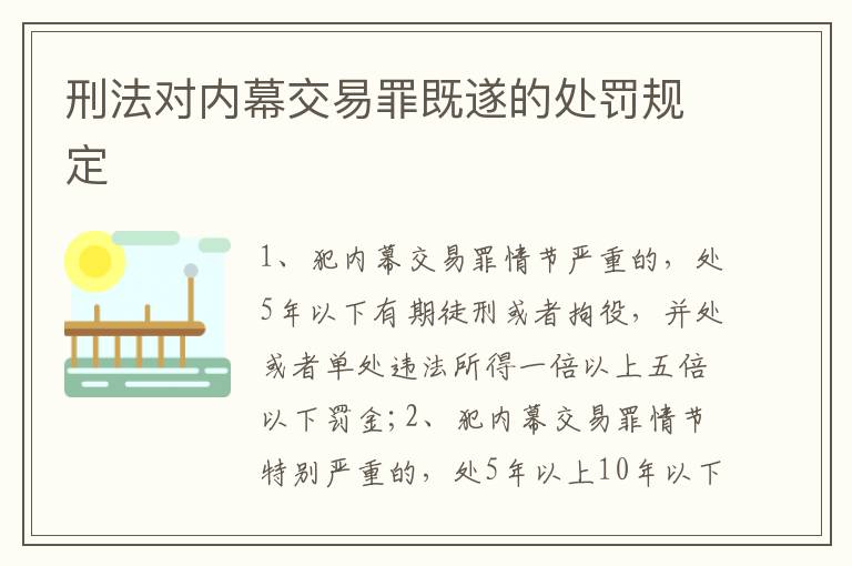 1、犯内幕交易罪情节严重的,处5年以下有期徒刑或者拘役,并处或者单处违法所得一倍以上五倍以下罚金;