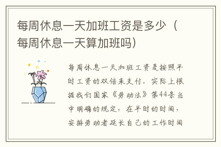 每周休息一天加班工资是按照平时工资的双倍来支付。正常上班时间工资的两倍,周六周日公休,属于加班。正常加班是1.5倍,法定节假日加班是3倍。