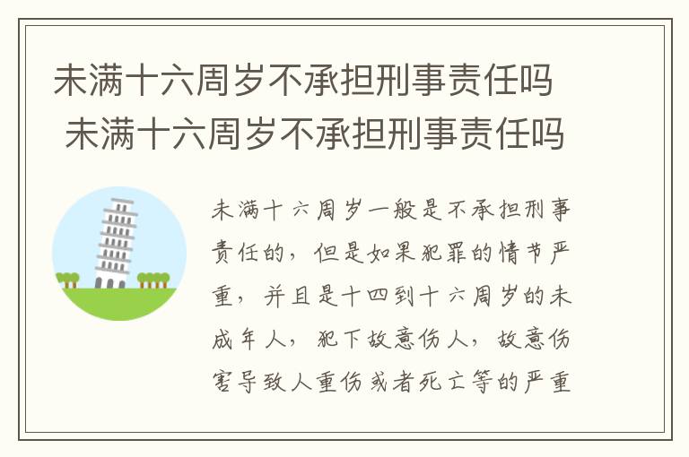一般未满十六岁是不负刑事责任的,但是如果已满十四周岁不满十六周岁的人,犯故意杀人、故意伤害致人重伤或者死亡、强奸、抢劫、贩卖毒品、放火、爆炸、投放危险物质罪的,应当负刑事责任。