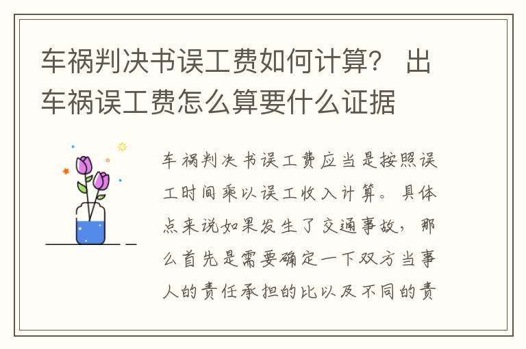 车祸判决书误工费应当是按照误工时间乘以误工收入计算。