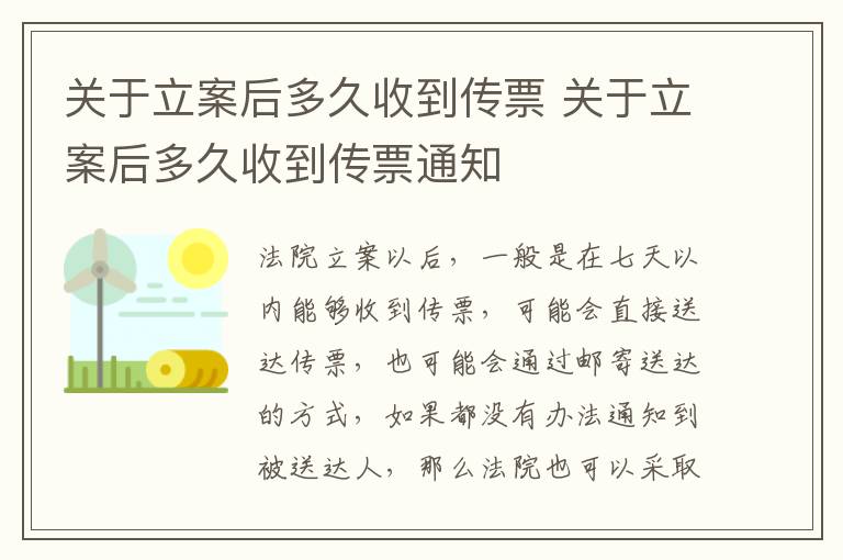 立案后一般7日内向被告送达传票。传票可以采用采用直接送达、留置送达、委托送达、邮寄送达的方式,以上方式无法送达的,可以采用公告送达,公告送达是指采用登报的方式送达传票自发出公告之日起,经过六十日,即视为送达。