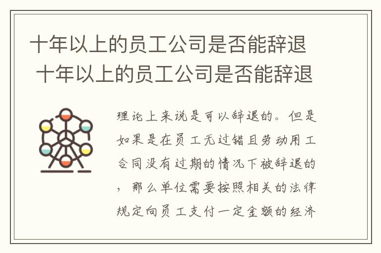 十年以上的员工公司在理论上来说是可以被辞退的,但是如果是员工无过错的情况下被辞退的必须要单位按照我国相关的法律规定条款向员工支付一定金额的经济补偿金,经济补偿金的计算方式是固定的,也可以双方进行协商解决都是合理的。
