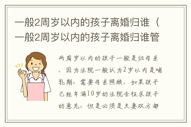 2周岁以内孩子归母亲。因为2周岁的孩子还是在哺乳期内,需要有母亲照顾。但母方有下列情形之一的,可随父方生活: