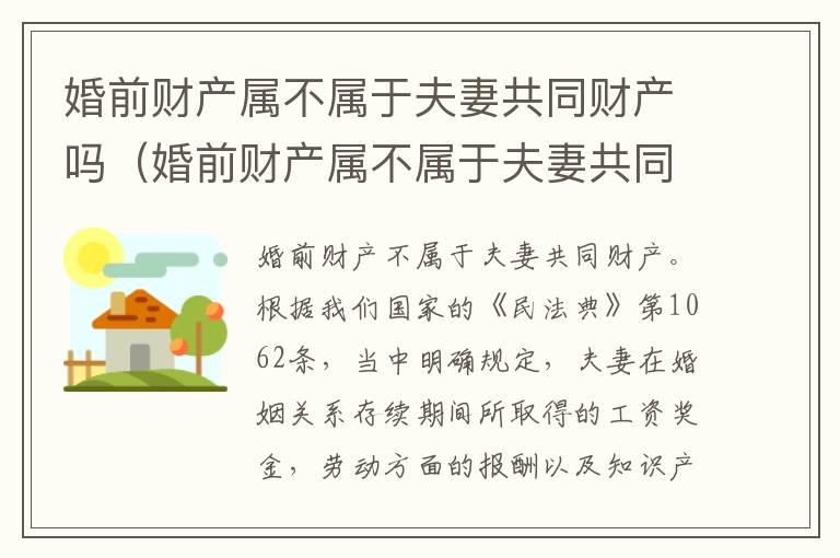 根据我们国家法律当中明确的规定,对于离婚的时候夫妻共同财产分割,首先是需要明确一下哪些是属于夫妻共同财产的范畴,只有这样的话,才能够准确无误的确定一下双方应当取得的财产的份额。婚前所取得的财产一般都是属于个人财产。