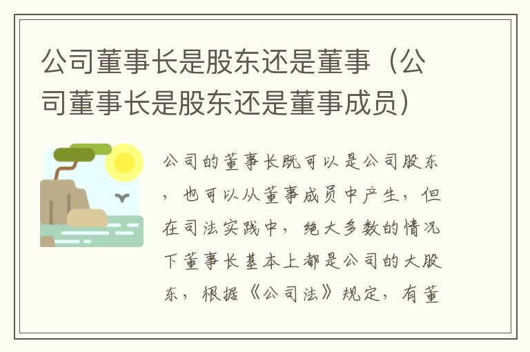 董事长可以是股东,也可以是董事,实践中,董事长一般是公司大股东。