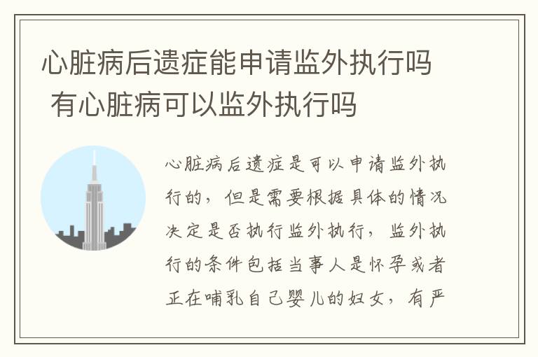 可以。对于判处有期徒刑或者拘役的罪犯,心脏病严重者可以监外执行。