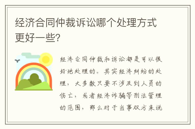 一、经济合同仲裁诉讼哪个处理方式更好一些?