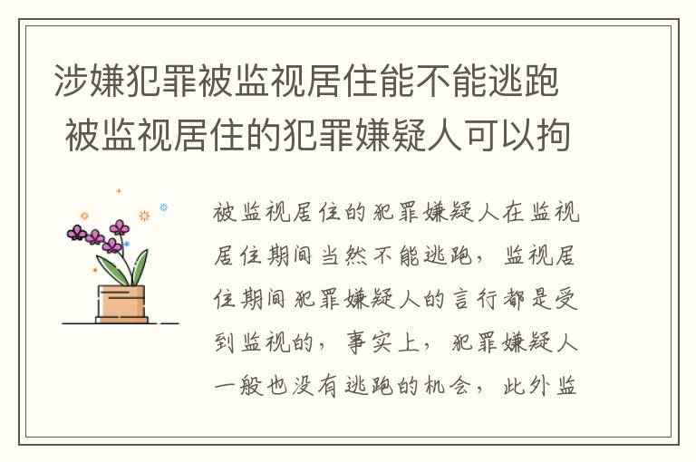 一、涉嫌犯罪被监视居住能不能逃跑?