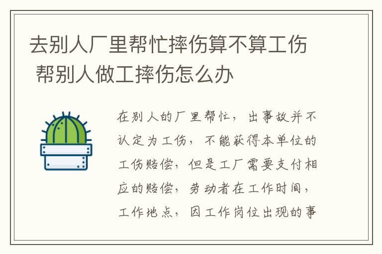 不属工伤,但厂里要负赔偿责任。如果当事人是无偿帮忙或是由厂里临时雇佣的工人,在工作中受到损害的,厂里应负赔偿责任;如果是无偿帮忙,但厂里已明确拒绝帮忙的情况下,厂里不负赔偿责任。
