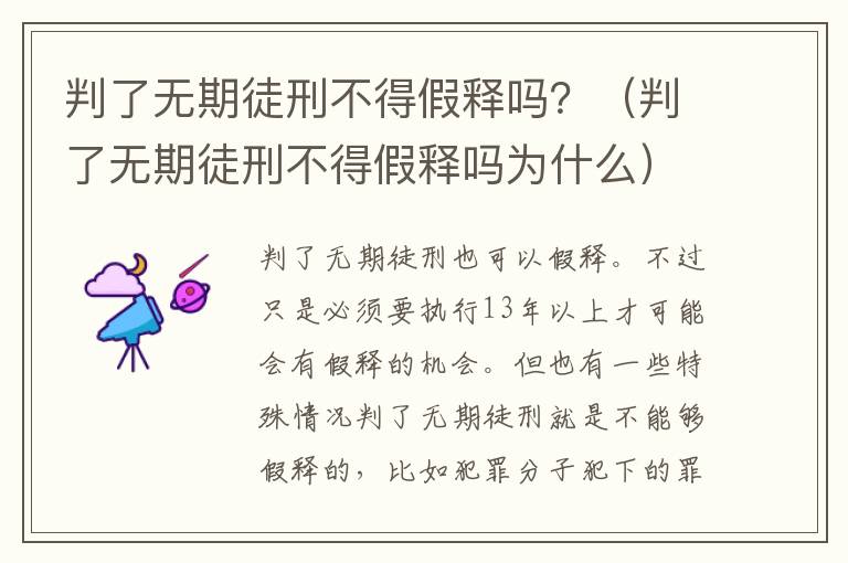 所以虽然是被判处无期徒刑,但是也是可以假释的,不过并不是所有的无期徒刑都能够假释,如果要想假释无期徒刑,首先这个犯罪分子他犯的罪不是暴力犯罪,而且他的犯罪是必须要执行13年以上,他才有可能有这个机会去申请假释,但最终是否假释就要看实际情况来决定了。